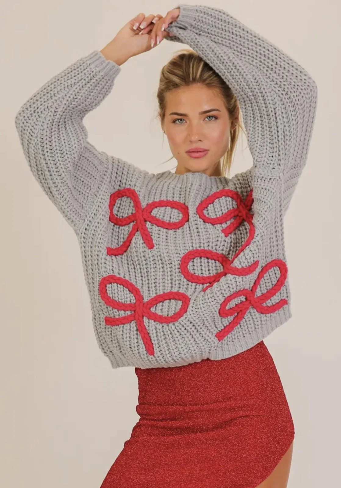 Shop › Sugarplum bow knit sweater Image 1 of 1 Sugarplum bow knit sweater $50.00 3D bow festive red yarn, perfect for the holidays Size: S M L Get notified by email when this product is in stock. Quantity: Add To Cart Added! 3D bow festive red yarn, perfect for the holidays